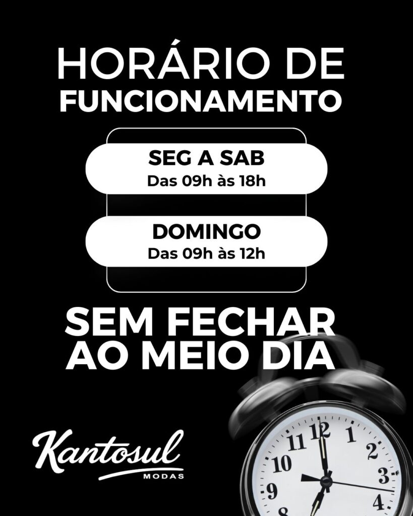 Kantosul Modas Na Kantosul você encontra moda feminina, masculina e infantil, além de pijamas para toda a família, moda praia, fitness e acessórios. Estamos abertos todos os dias, de segunda a domingo, sem fechar ao meio-dia. Visite-nos e descubra novidades para todos os estilos!